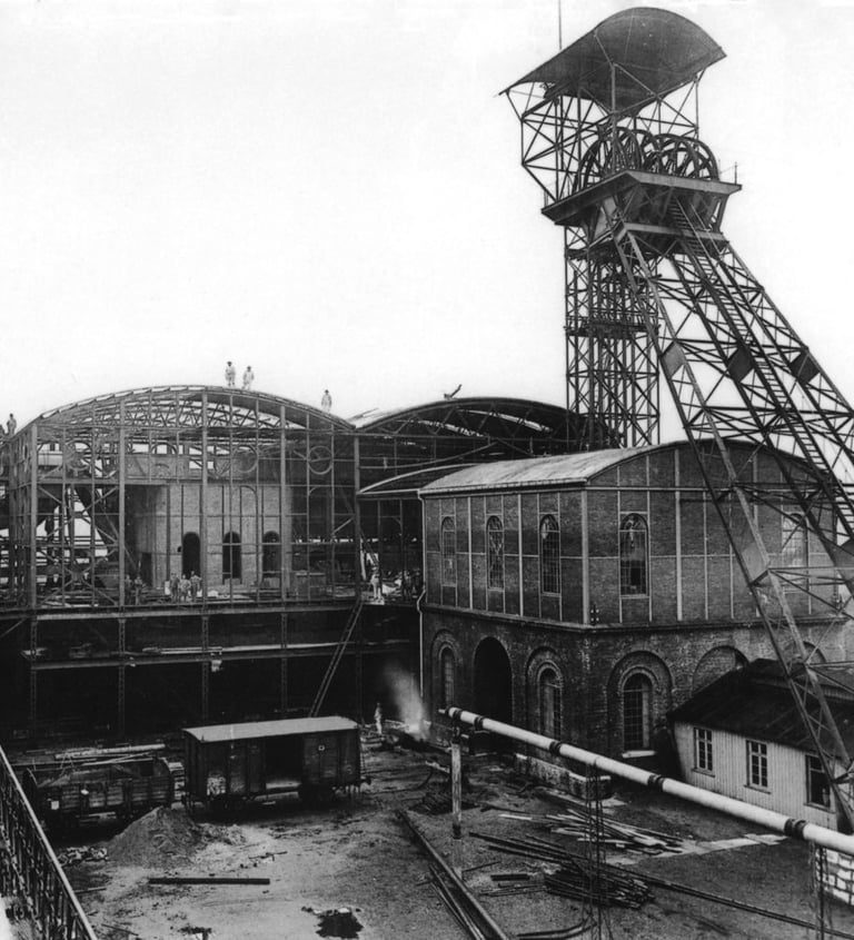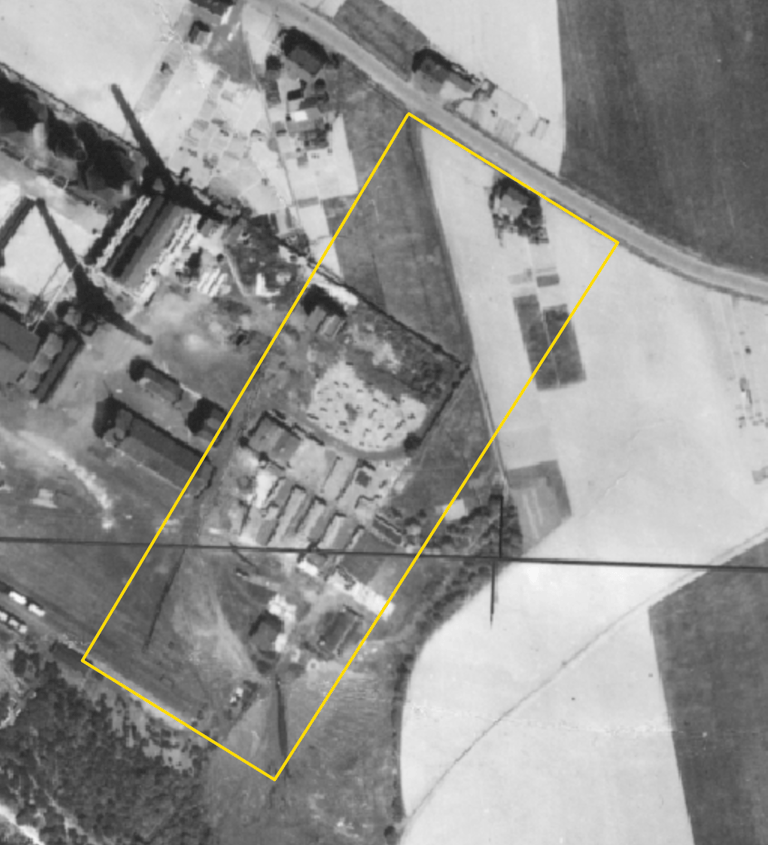 Das älteste bekannte Orthofoto zeigt das Grundstück im Jahr 1952 – damals noch nicht an das Straßennetz angebunden und Teil der Zeche Zollern. Zwischen 1951 und 1986 wurde hier aktiv Steinkohle gefördert. Spuren dieser industriellen Vergangenheit prägen das Gelände bis heute.